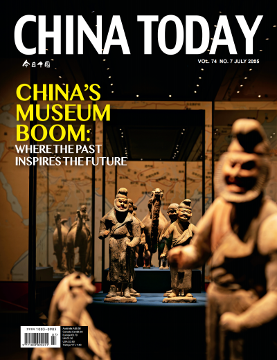 《今日中國》(英文)第7期封面報道聚焦“博物館熱”,論述博物館的文化魅力和歷史價值,并探討博物館未來的發展方向。從重磅展覽到沉浸式互動,從科技賦能到文旅體驗,博物館正與時代同頻共振,在快速變化的社會中煥發新活力,既滿足公眾日益增長的高品質文化需求,也守護歷史、構筑未來。