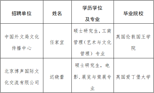 中國外文出版發行事業局所屬企事業單位接收海外留學生公示