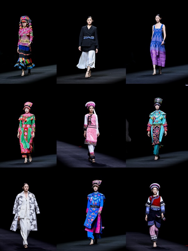 中國非遺服飾展示環節,以來自洛陽、漢中、五指山、大理和楚雄五地的特色服飾為載體講述中國故事。洛陽漢服形制典雅、禮韻深遠,彰顯華夏千年衣冠文明;羌族服飾攜山野清風而至,繡紋深藏民族印記與吉祥寓意;海南黎錦華美展現三千年非遺技藝,植物染紋樣織就南海瑰麗傳說;大理白族服飾凝結風花雪月,針線間詮釋自然詩意與生活哲學;楚雄彝族服飾紋樣華麗、銀飾精美,彰顯彝族文化獨特魅力。