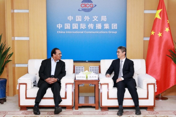 高岸明祝賀扎法爾獲得蘭花獎“友好使者獎”,并介紹了中國共產黨二十屆四中全會成果。高岸明表示,近年來外文局與巴基斯坦相關機構開展務實合作,取得積極成效,希望扎法爾先生進一步發揮蘭花獎文化使者的作用,通過蘭花獎和“讀懂中國”國際論壇等重要國際文化交流平臺,推動中巴在合作研究、圖書出版、媒體傳播等領域繼續加強合作,促進中巴人文對話及全球文明交流互鑒。