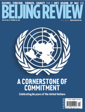 本期《北京周報》封面報道聚焦于聯合國成立80周年以及全球治理倡議的重大意義。中國國際問題研究院國際戰略研究所所長楊晨曦撰文回顧80年來聯合國事業的成就以及中國在其中發揮的重要作用。多位國際知名專家學者在文章中圍繞相關話題發表見解。