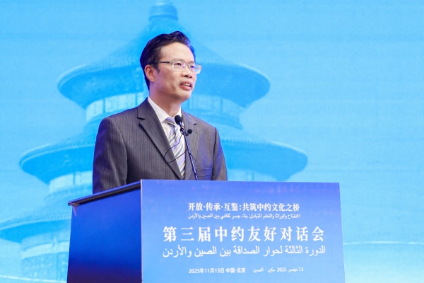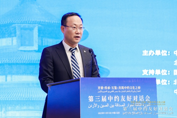 11月13日,第三屆中約友好對話會在京舉行。中國外文局副局長余應福,約旦駐華大使胡薩姆·侯賽尼,中國駐約旦大使郭偉,北京外國語大學黨委常委、副校長丁浩致辭。約中友好協會主席賈邁勒·達穆爾、國家開發投資集團有限公司新聞發言人張亮作主題發言。本屆對話會以“開放·傳承·互鑒:共筑中約文化之橋”為主題,來自中國、約旦、埃及等多個國家和地區的高校、企業、政府機構代表共200余人參加活動。