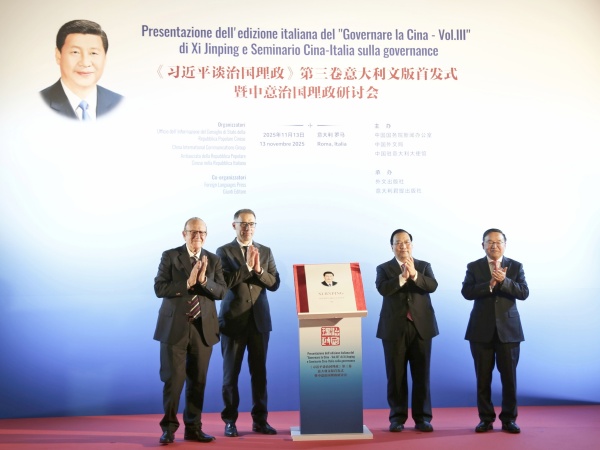 賈桂德表示,《習近平談治國理政》第三卷意大利文版由中意兩國出版機構合作推出,可以幫助意大利讀者從新時代藍圖讀懂中國道路的清晰航向,從中國共產黨讀懂中國之治的成功密碼,從高質量發展讀懂中國奇跡的實踐路徑,從命運與共讀懂中國理念的大國擔當,延續了中意兩大文明鑒古知今的智慧傳統,更是新時代中意人文交流的生動體現。