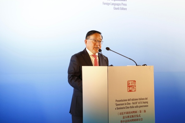 常勃表示,《習近平談治國理政》第三卷意大利文版,與此前出版的第一、二卷意大利文版一道,將為更多意大利讀者以母語閱讀中國、讀懂中國式現代化打開新的窗口,為推動中意兩國文明互鑒架設了理解之橋。中方將向意各界提供英文版第四、五卷,為意大利讀者和在意各國讀者及時了解習近平主席治國理政理念,提供有益借鑒和重要參考。同時,兩國機構將加快推進第四、五卷意大利文版的翻譯出版工作,為意各界深入了解中國提供最新權威讀本。